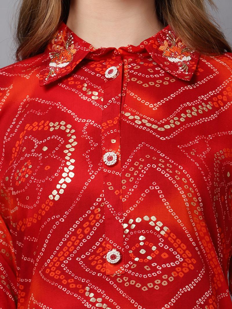 Premium Rayon Viscose Printed Badhani Kurta with Handwork on neck
